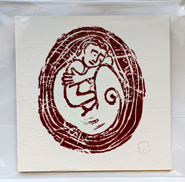 Estampe de gravure sur gomme sur papier de soie, marouflé sur contrecollé avec un système d'accroche au dos. Protégée sous blister