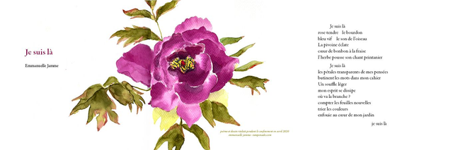 "Je suis là", Un leporello (petit livre plié) avec un dessin numérisé issu de mes carnets de bord et un de mes poèmes, plié en 3 et enveloppée dans une pochette individuelle, à s'offrir, ou à offrir, seul ou à glisser dans un cadeau plus important
