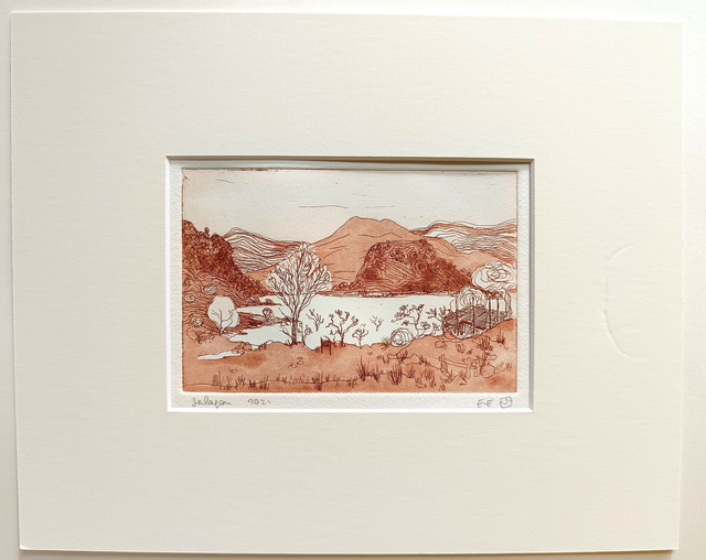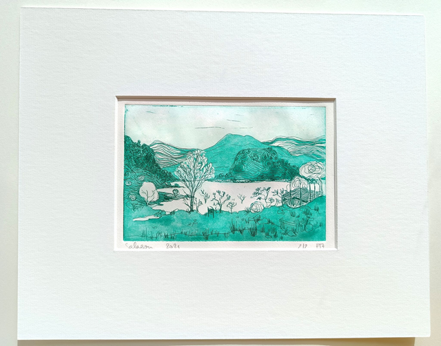 Lors de mes pique-niques hebdomadaires, je dessinais souvent dans mon carnet, mais pour cette série de paysages du Salagou, j'ai dessiné directement sur la plaque vernie.